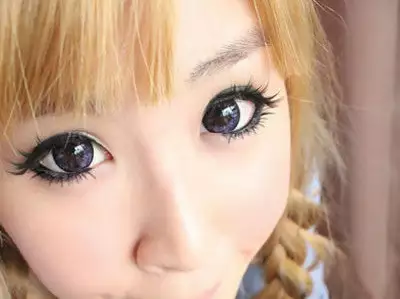 Blændende farvede kontakter for et Dolly-look